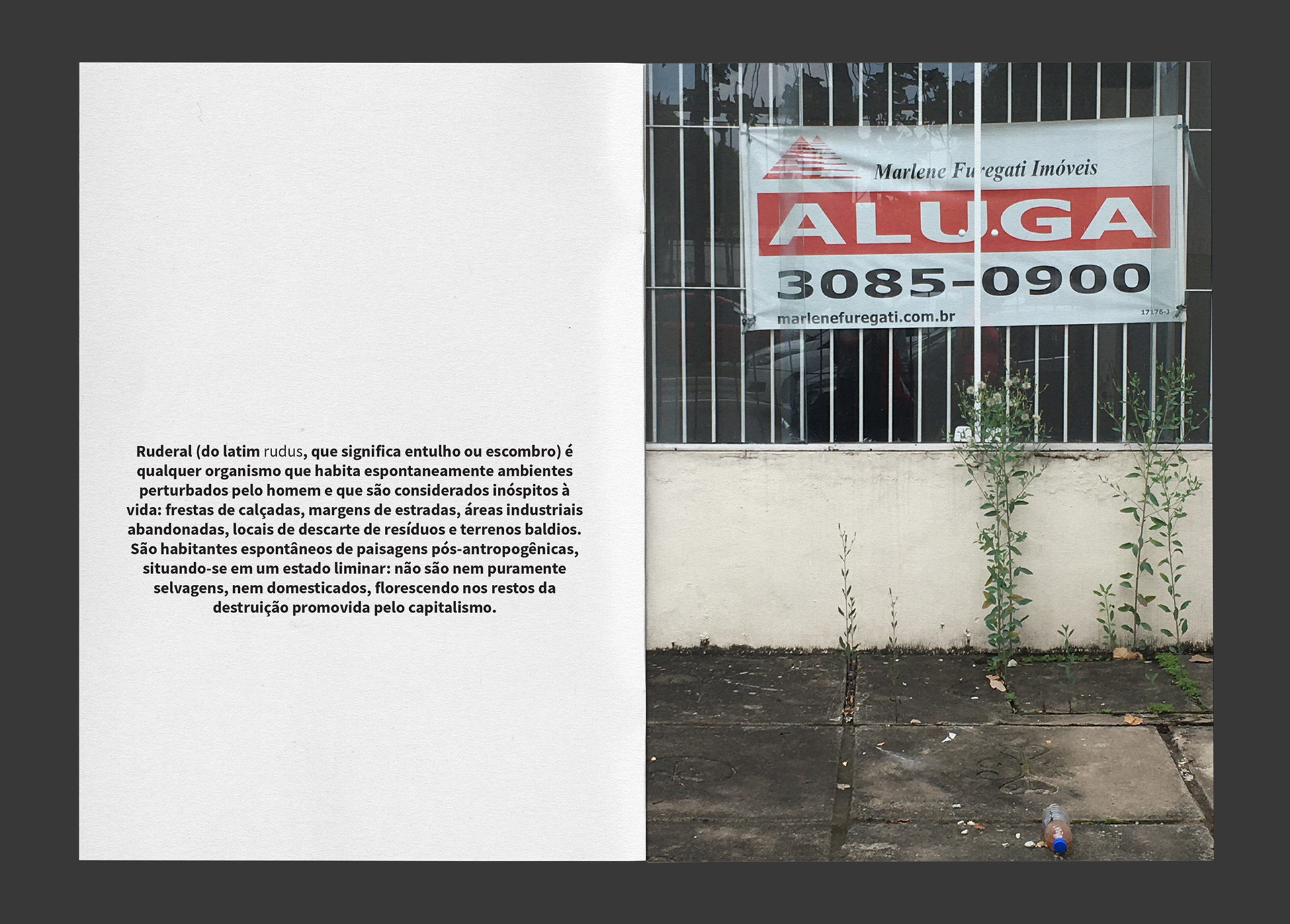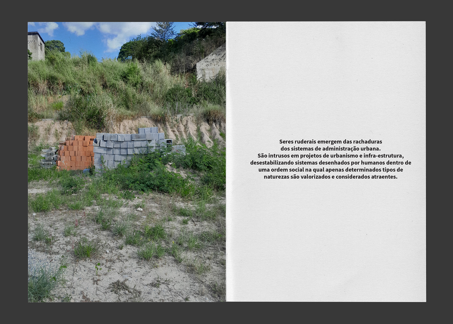 The city is a territory of tensions and power struggles, where the forces of nature and culture intertwine in a constant process of transformation, overwhelmingly to benefit capital. The weeds that emerge from the cracks in the cities, in this context, are small signs of rebellion in contemporary urban landscapes. It is life that persists in flourishing amidst the concrete, on the margins of disorder and chaos.
