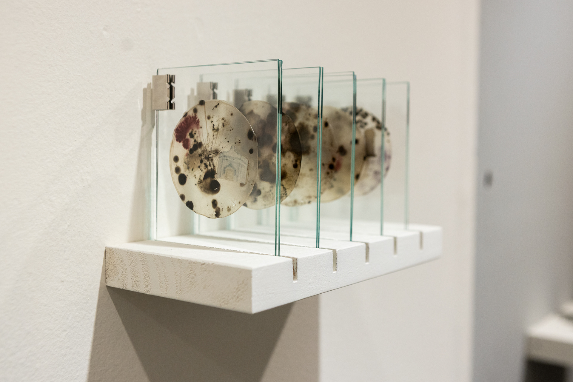 O trabalho final é um arquivo de 5 placas de ágar sob aquarelas, que foram expostas na mostra “Dormir mientas nuestras camas arden”, no CCEBA (Centro Cultural de España en Buenos Aires) entre outubro e dezembro de 2025. / The final work is an archive comprising five agar plates under watercolor paintings, exhibited in the show "Dormir mientras nuestras camas arden" (Sleeping While Our Beds Burn) at the CCEBA (Centro Cultural de España en Buenos Aires) from October to December 2025.